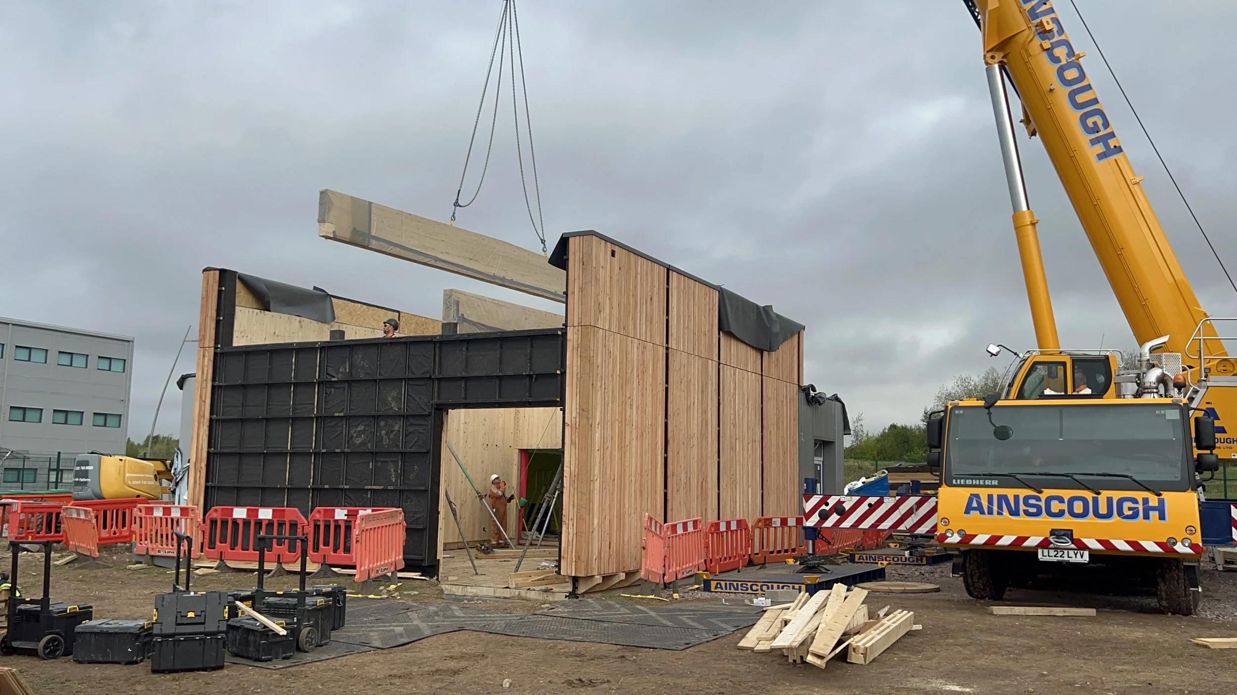 A kit of parts was designed, allowing complete panels to be constructed with both internal and external finishes completed off-site.